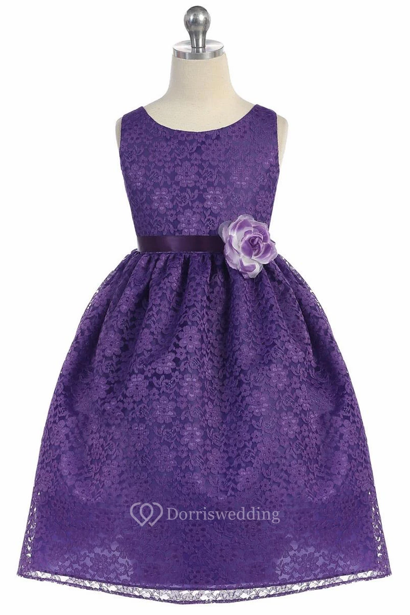 Tea-Length Floral Tiered Lace Flower Girl Dress