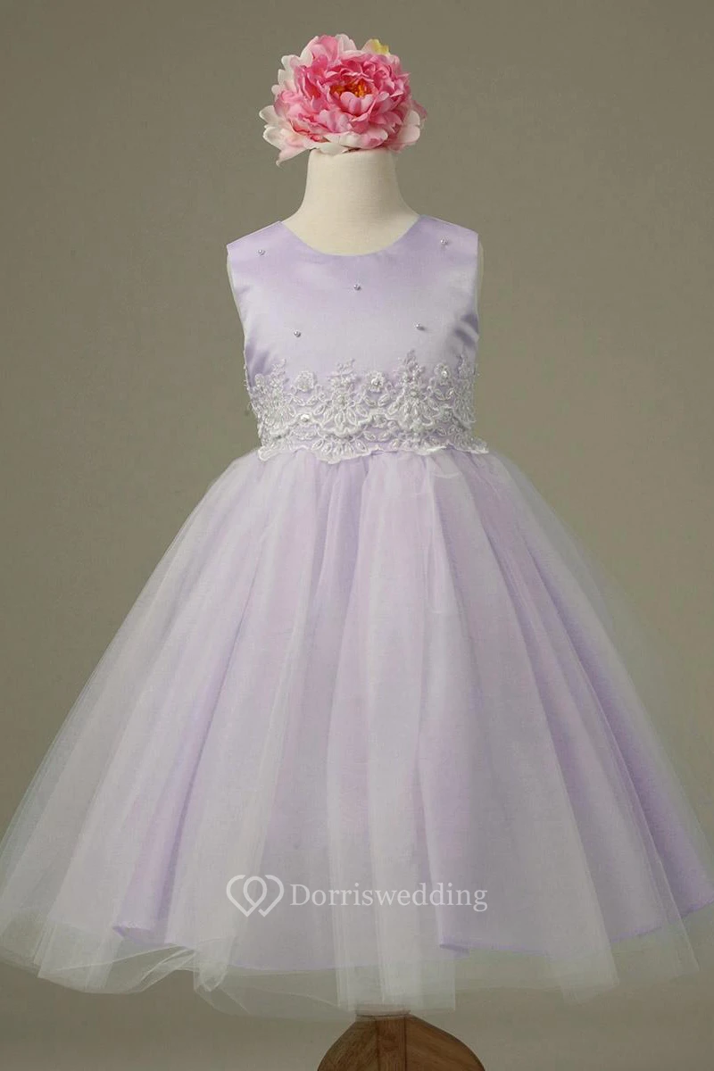 Tea-Length Floral Tiered Tulle&Lace Flower Girl Dress