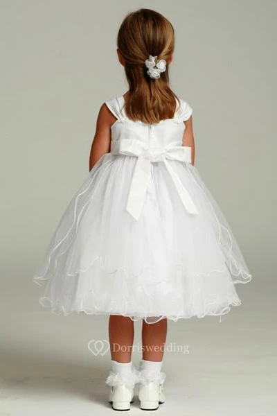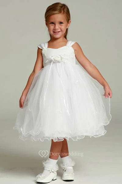 Tea-Length Floral Tulle&Satin Flower Girl Dress
