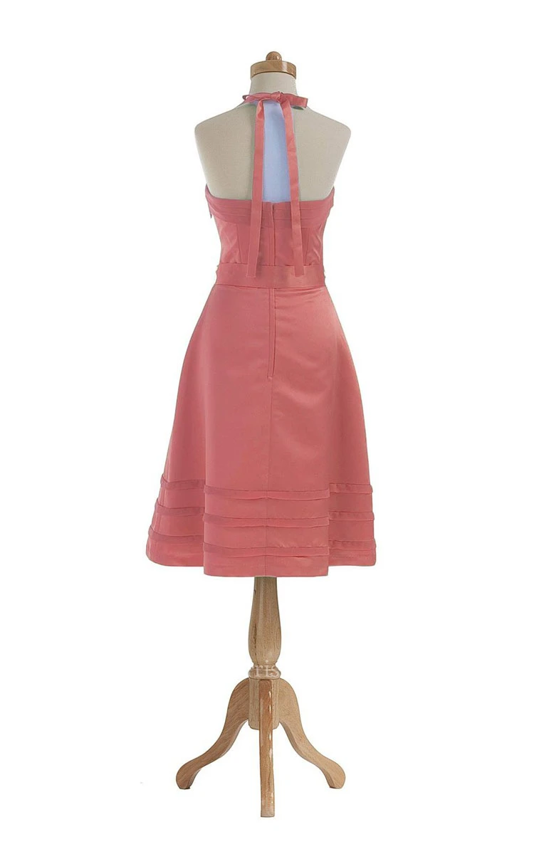Tea-length Halter Satin A-line Gown With Band
