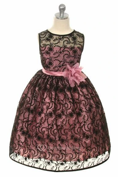 Tea-Length Illusion Tiered Lace&Satin Flower Girl Dress