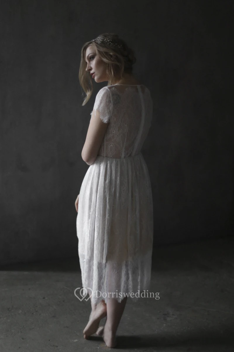 Tea-length Lace Simple Bohemian Wedding Dress With Zipper