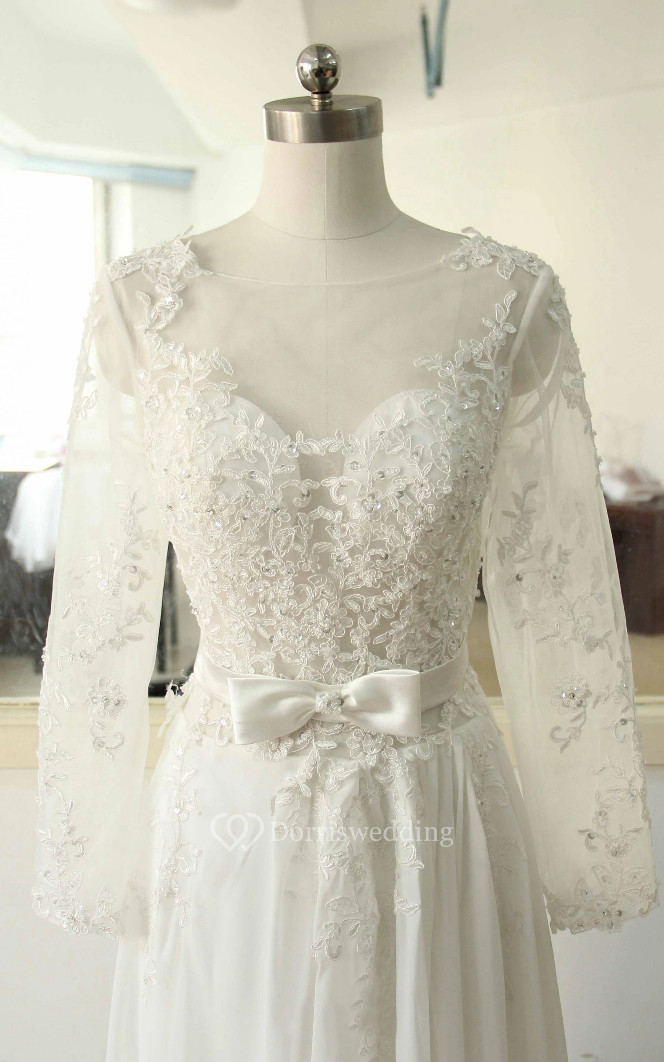 Tea-Length Long Sleeve Flower Backless Zipper Corset Back Chiffon Tulle Lace Satin Dress