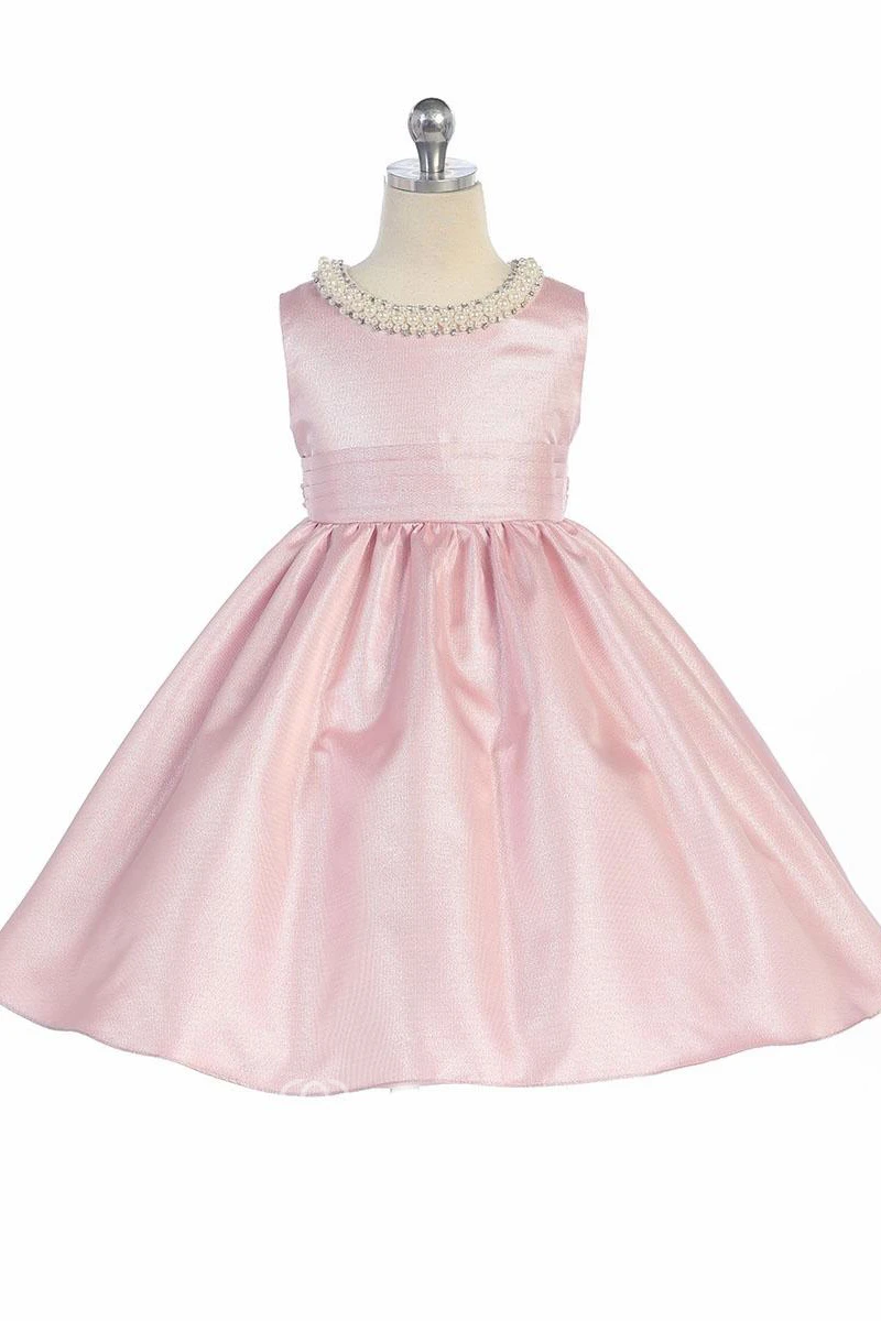 Tea-Length Pleated Sleeveless Flower Girl Dress