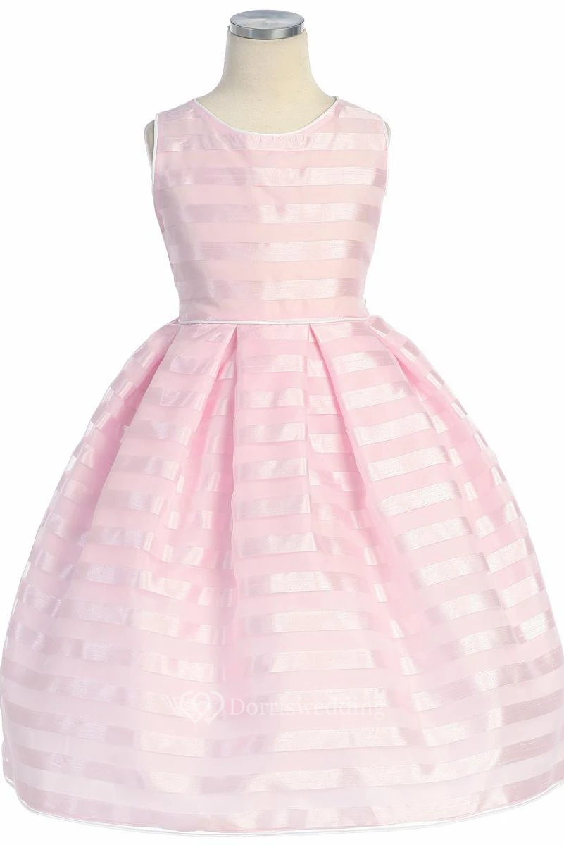 Tea-Length Pleated Sleeveless Organza Flower Girl Dress