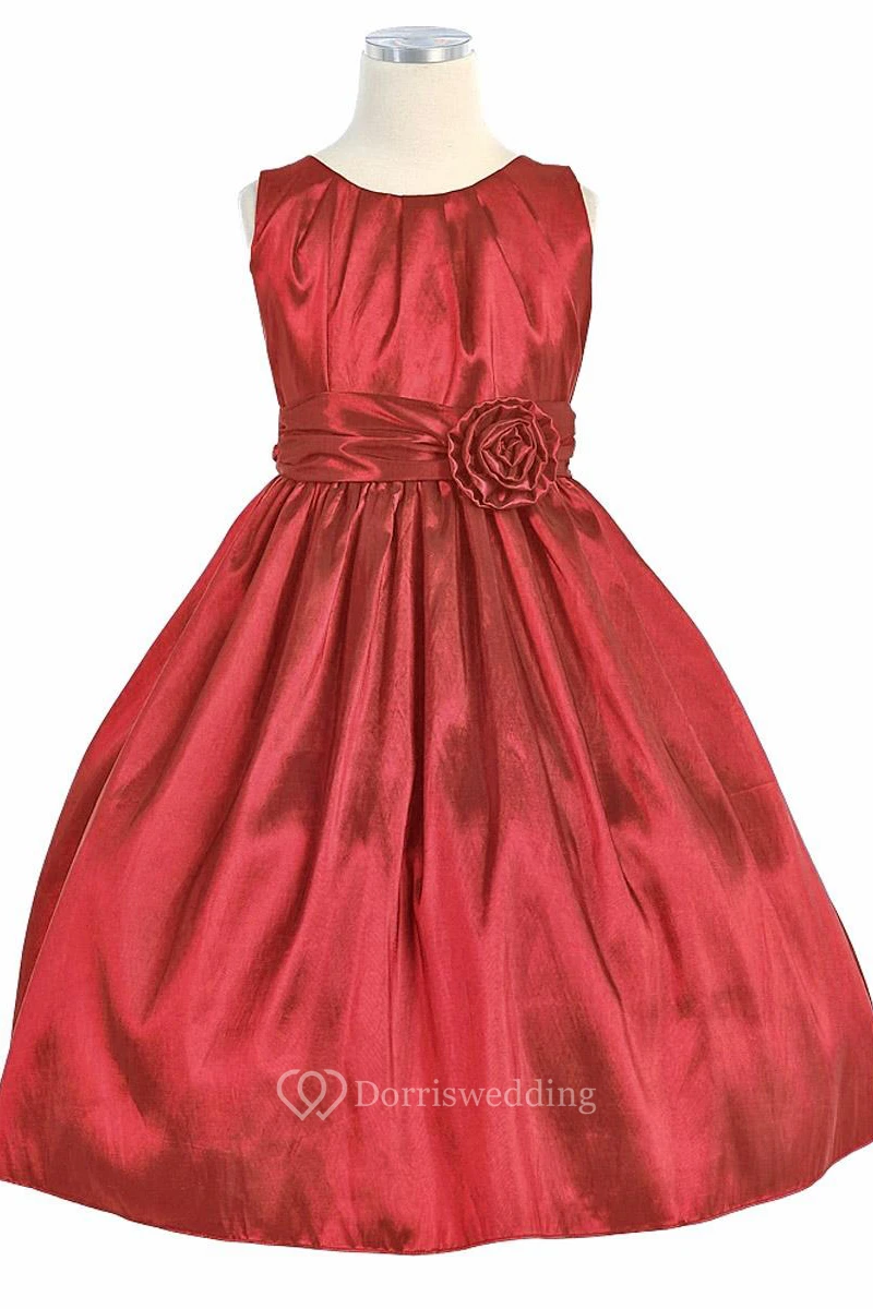 Tea-Length Pleated Taffeta Flower Girl Dress