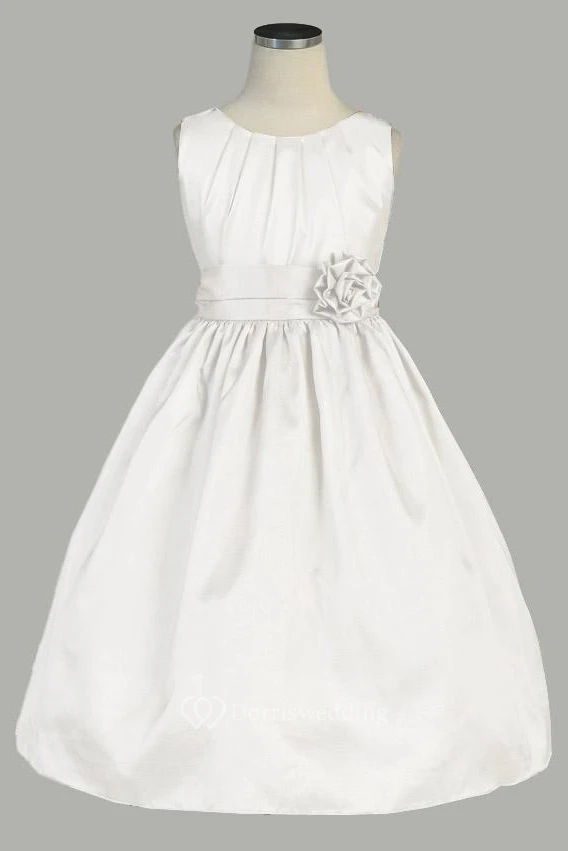 Tea-Length Pleated Taffeta Flower Girl Dress