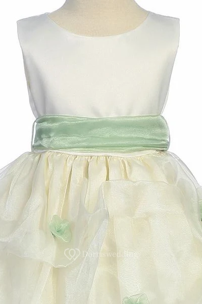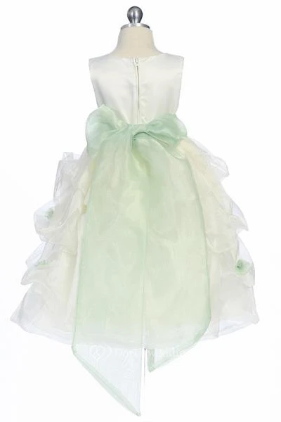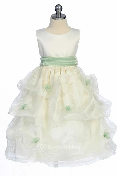 Tea-Length Ruched Organza&Satin Flower Girl Dress