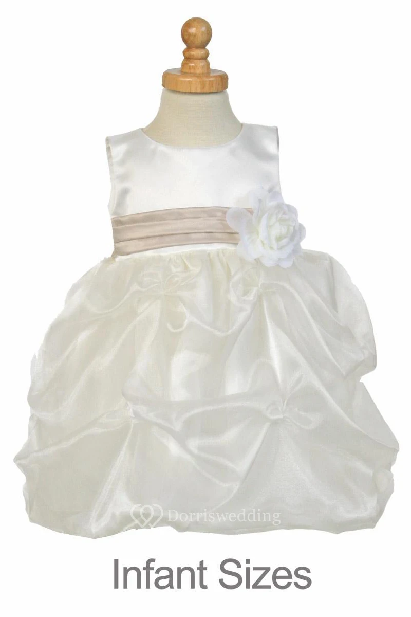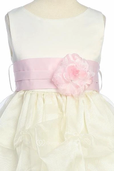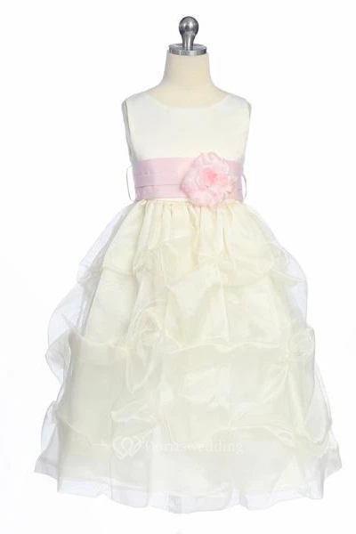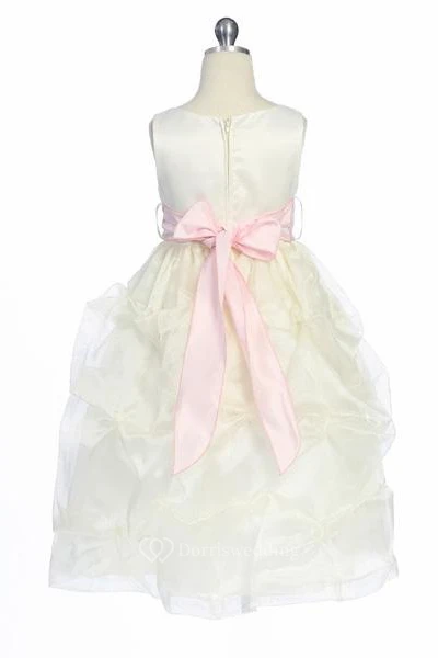Tea-Length Ruched Organza&Satin Flower Girl Dress