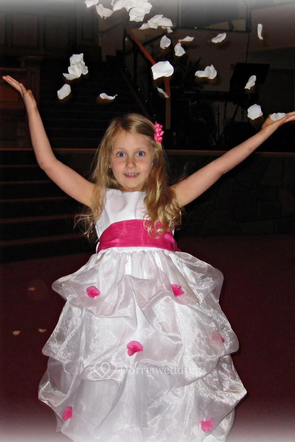 Tea-Length Ruched Organza&Satin Flower Girl Dress