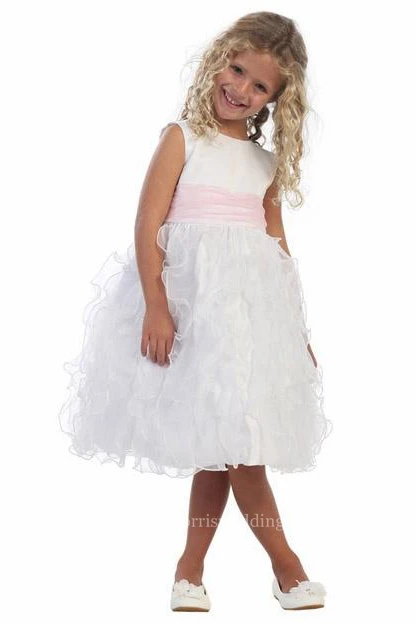 Tea-Length Ruched Sleeveless Organza&Satin Flower Girl Dress