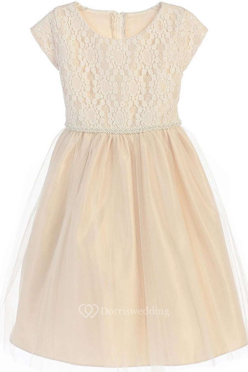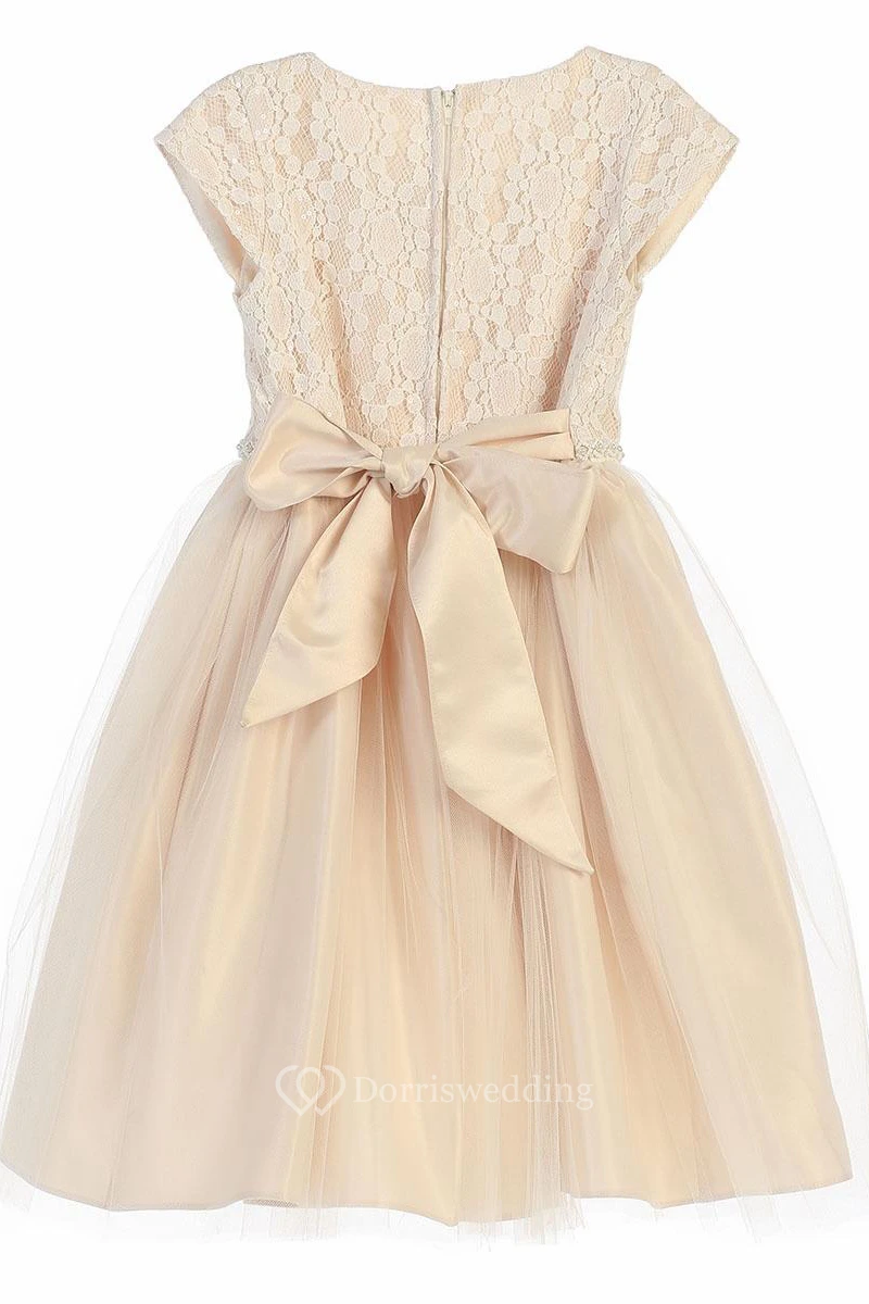 Tea-Length Sequined Tulle&Lace Flower Girl Dress With Embroidery