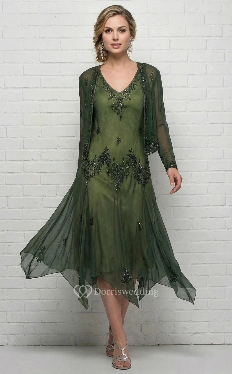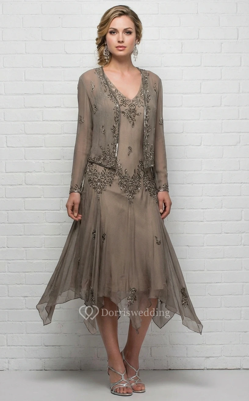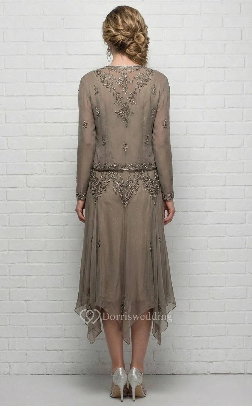 Tea-Length Sheath MOB Dress with Bolero Jacket
