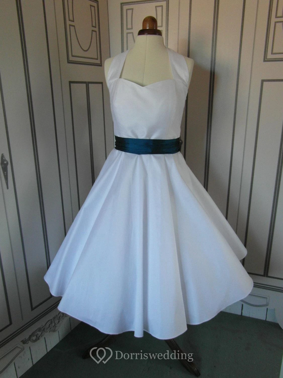 Tea Length Sleeveless A-Line Taffeta Gown With Satin Bow Sash