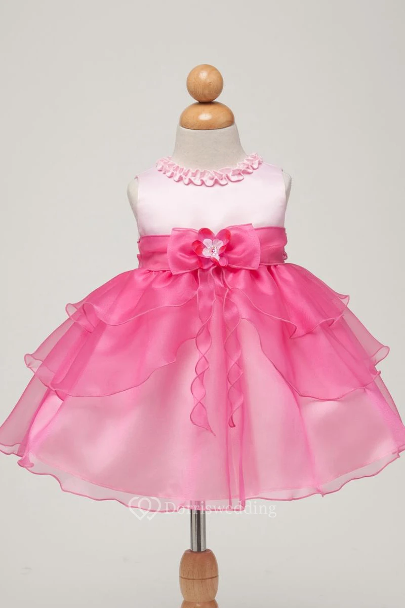 Tea-Length Sleeveless Bowed Organza&Satin Flower Girl Dress