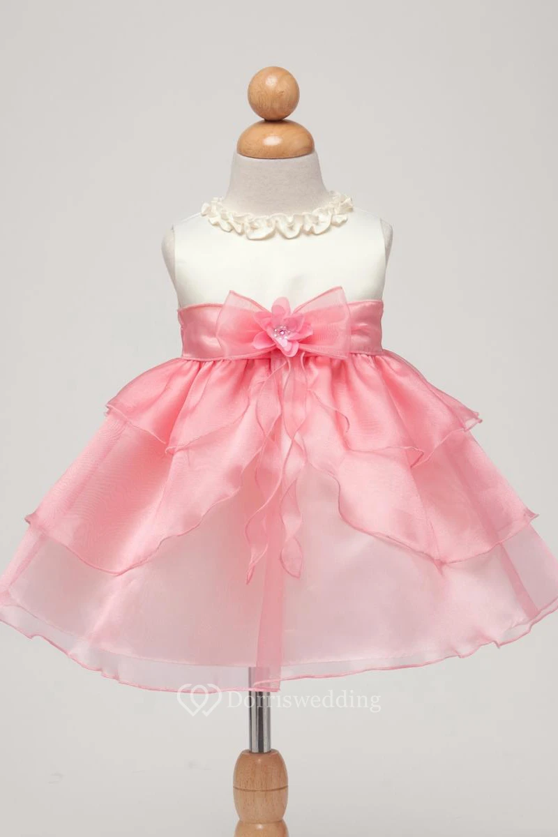 Tea-Length Sleeveless Bowed Organza&Satin Flower Girl Dress