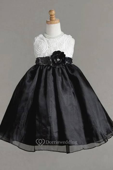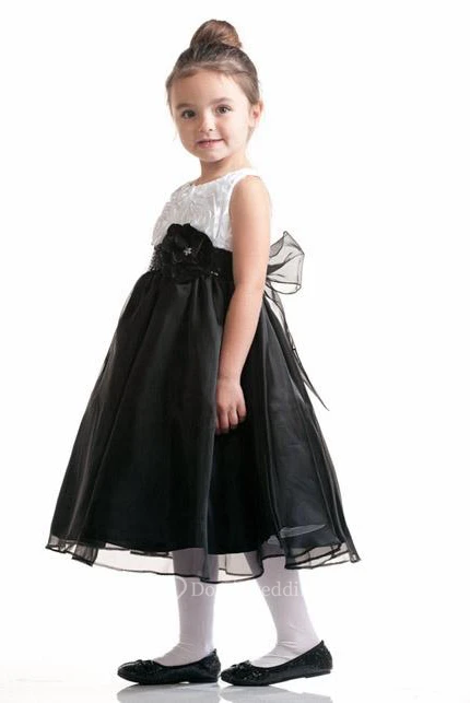 Tea-Length Sleeveless Bowed Organza&Taffeta Flower Girl Dress