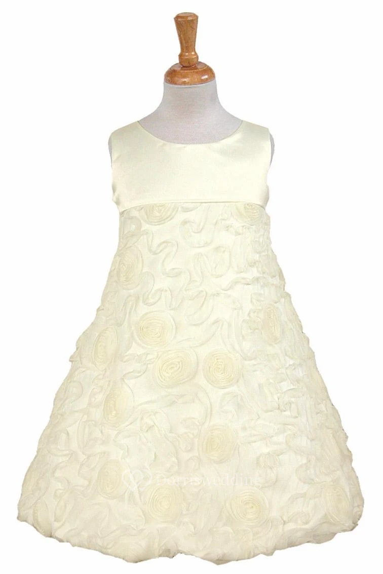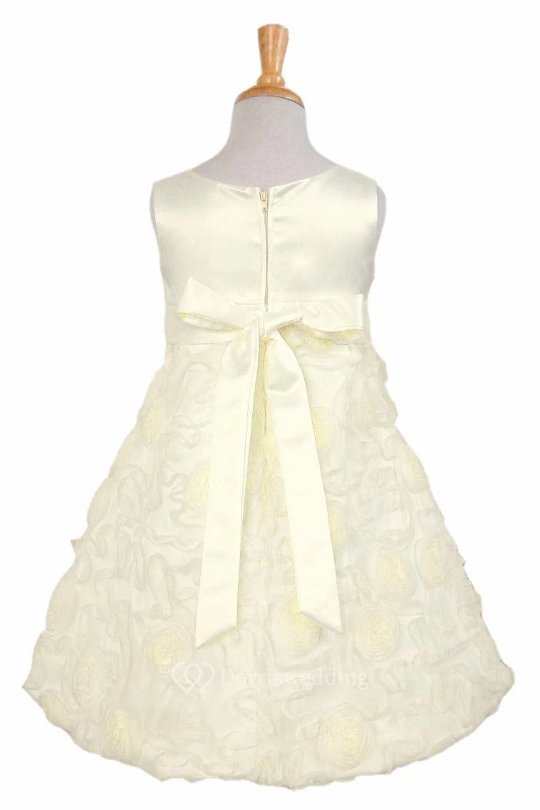 Tea-Length Sleeveless Bowed Satin Flower Girl Dress