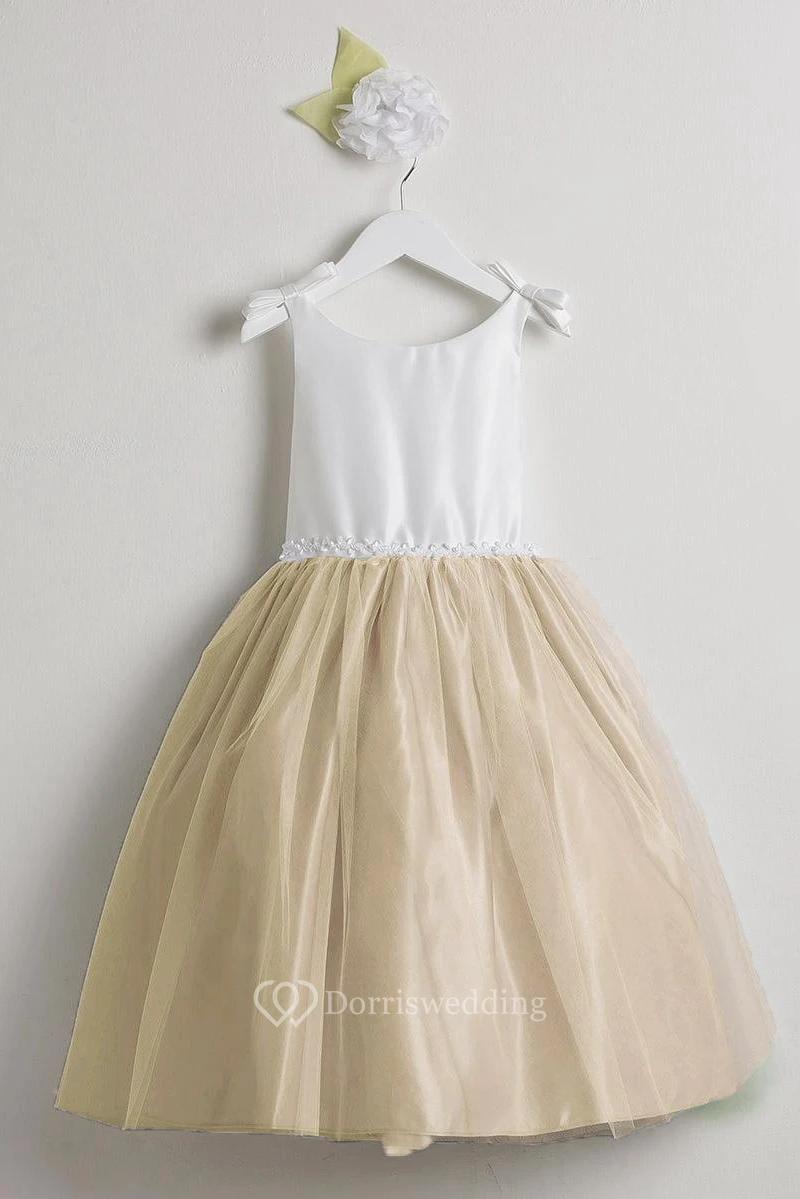 Tea-Length Sleeveless Bowed Tulle&Satin Flower Girl Dress