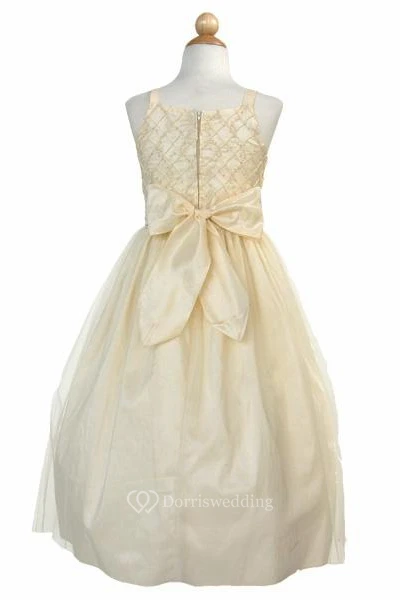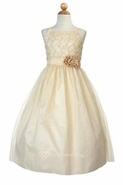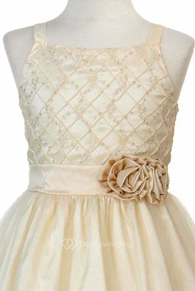 Tea-Length Sleeveless Embroideried Tulle&Taffeta Flower Girl Dress
