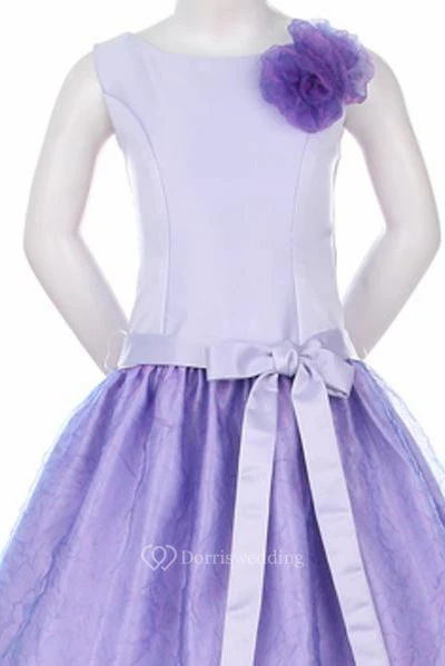 Tea-Length Sleeveless Organza&Satin Flower Girl Dress