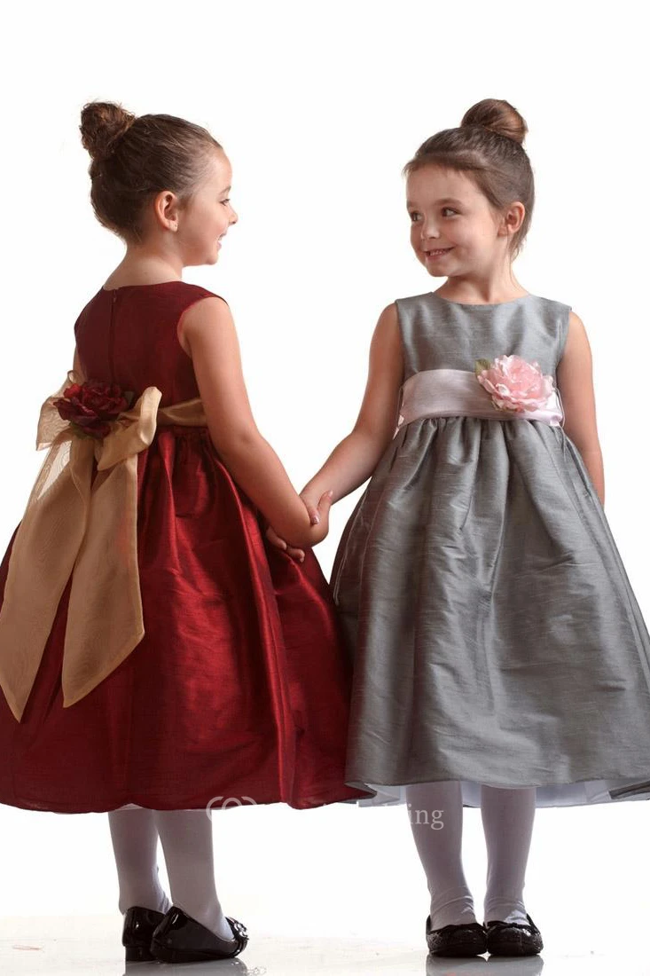Tea-Length Sleeveless Organza Flower Girl Dress