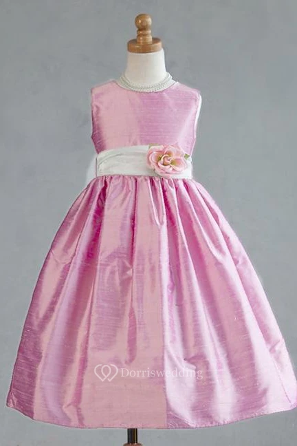 Tea-Length Sleeveless Organza Flower Girl Dress