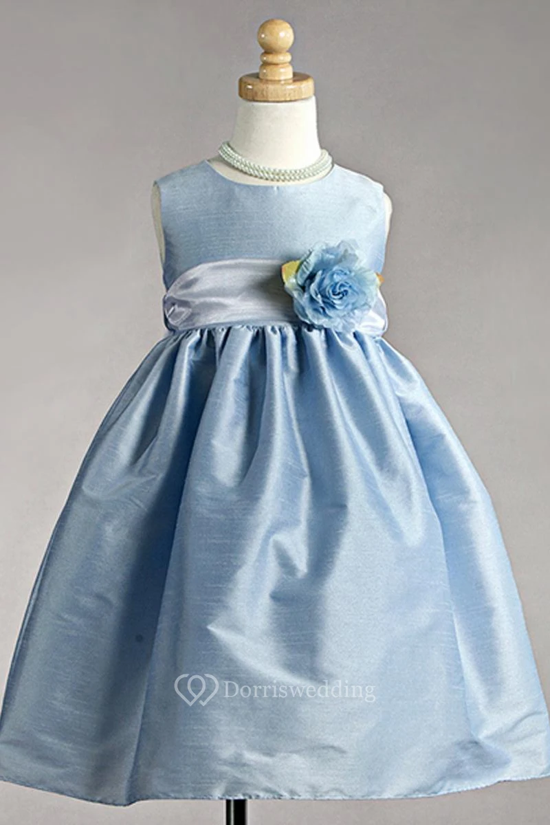 Tea-Length Sleeveless Organza Flower Girl Dress