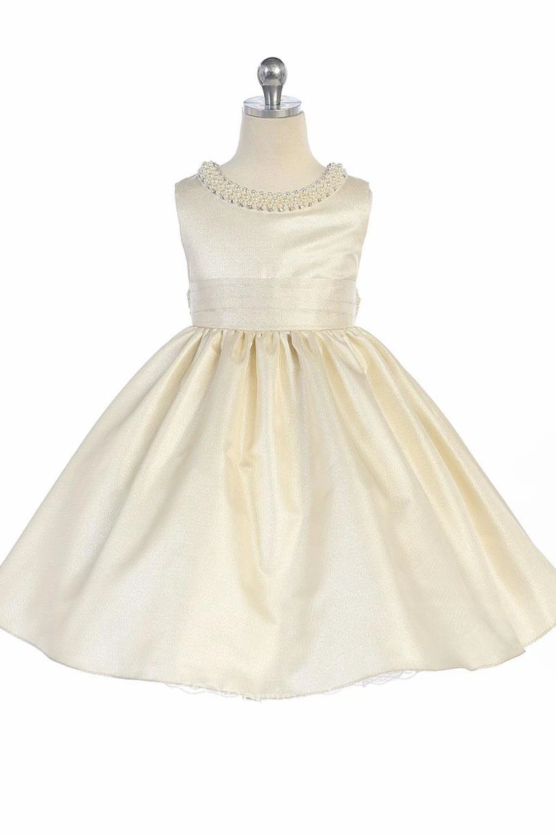 Tea-Length Sleeveless Pleated Flower Girl Dress