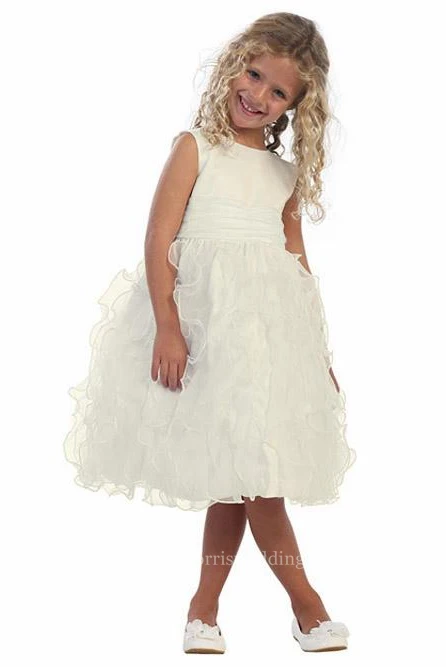 Tea-Length Sleeveless Ruched Organza&Satin Flower Girl Dress