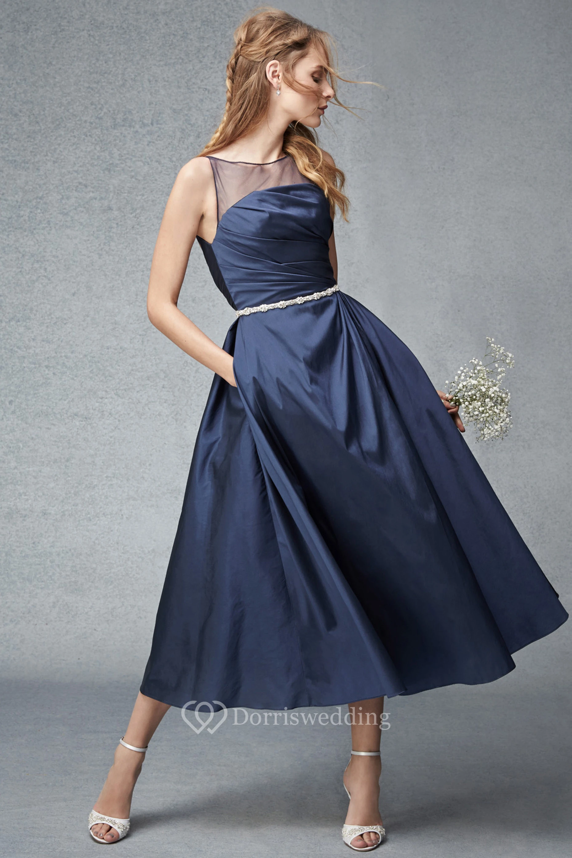 • Hemline/Train: Tea-length