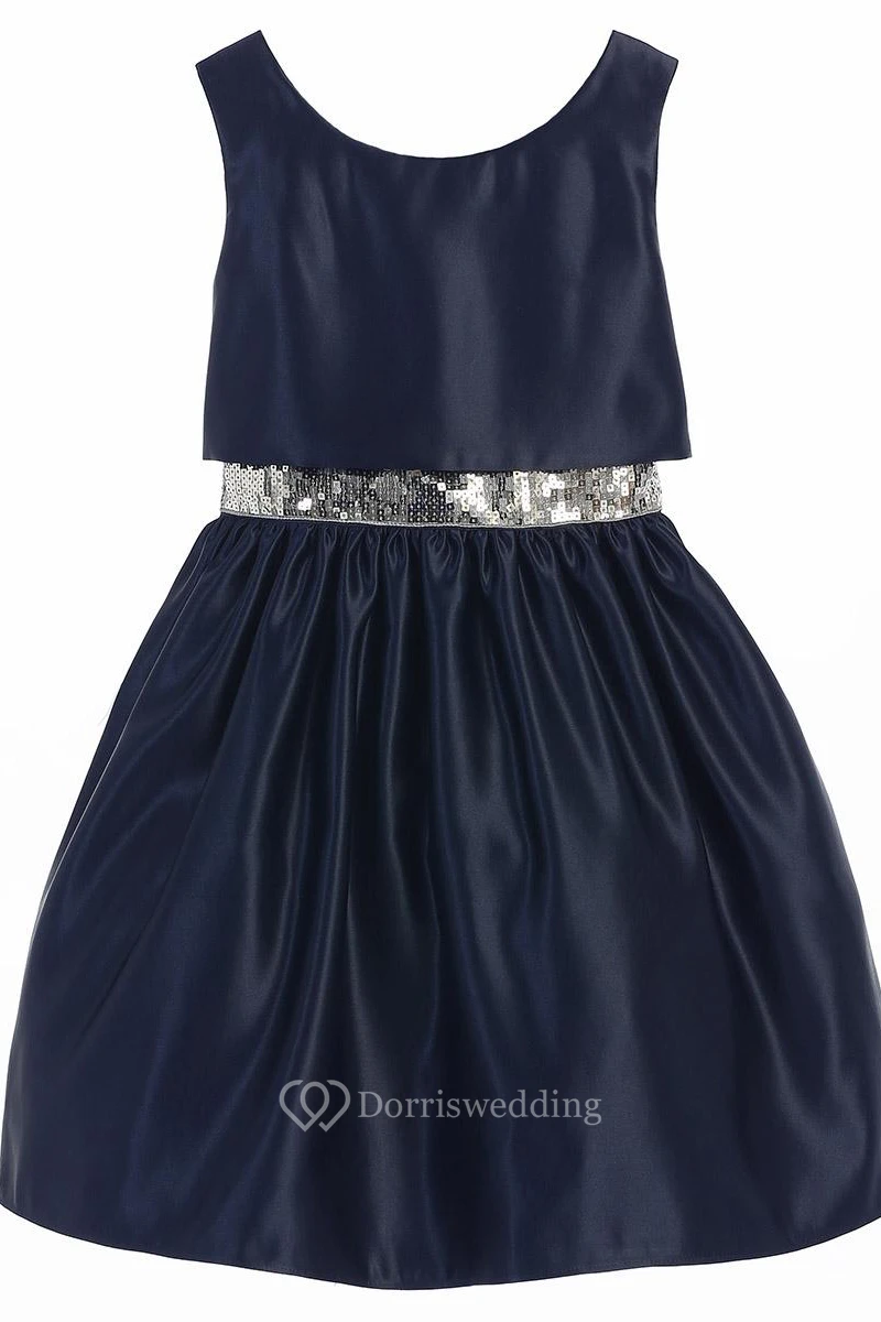 Tea-Length Sleeveless Sequins&Satin Flower Girl Dress