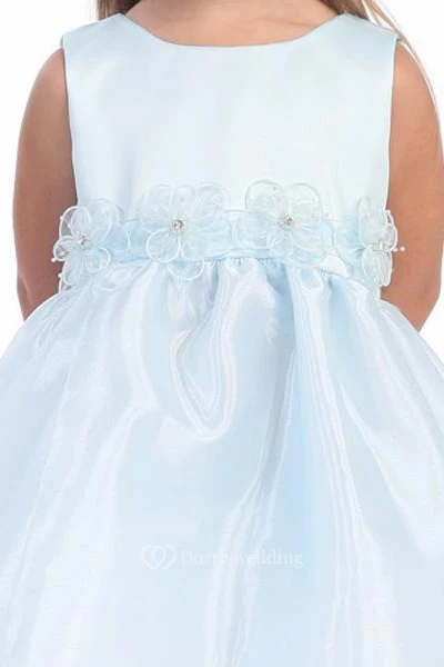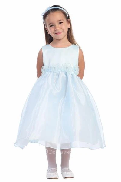 Tea-Length Sleeveless Tiered Organza&Satin Flower Girl Dress