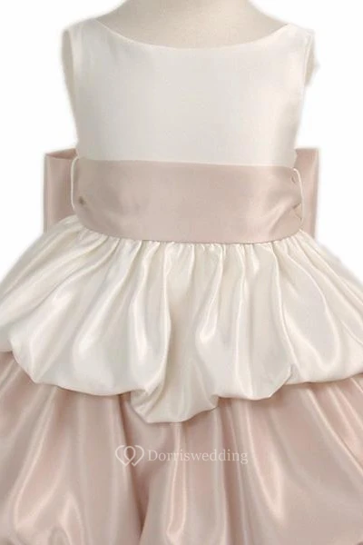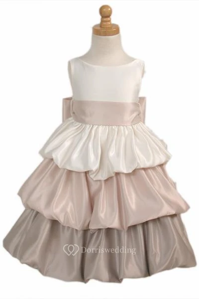Tea-Length Sleeveless Tiered Satin Flower Girl Dress