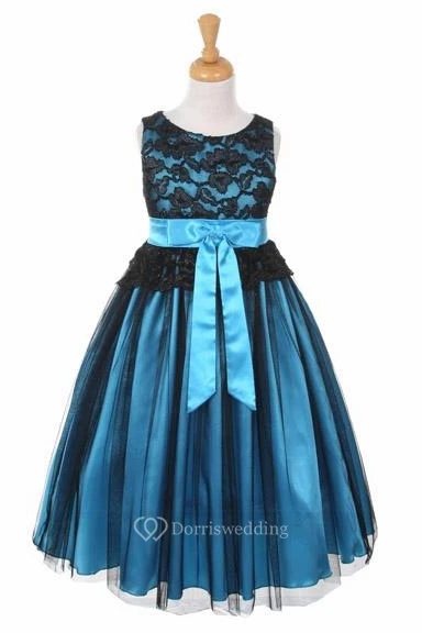 Tea-Length Sleeveless Tulle&Lace Flower Girl Dress