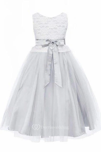 Tea-Length Sleeveless Tulle&Lace Flower Girl Dress