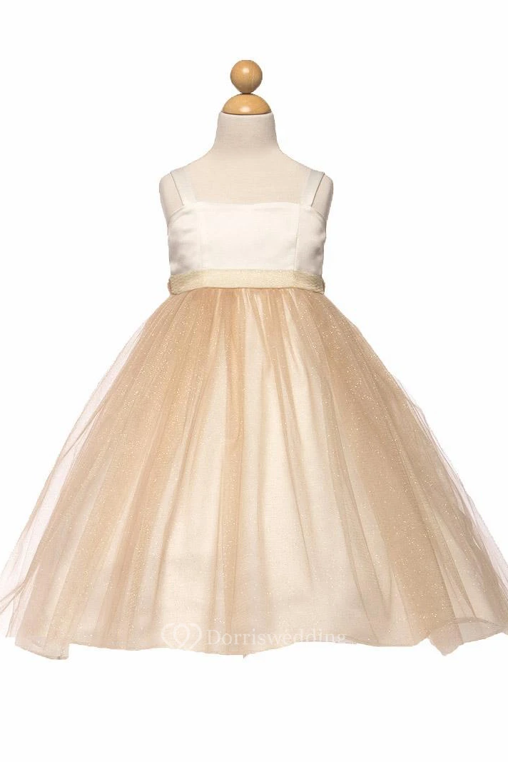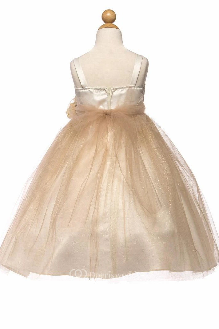 Tea-Length Spaghetti Empire Tiered Tulle&Satin Flower Girl Dress