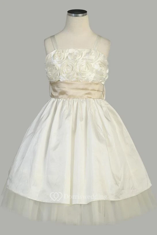 Tea-Length Spaghetti Ruffled Tiered Tulle&Taffeta Flower Girl Dress