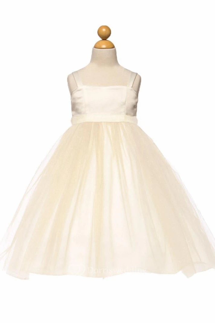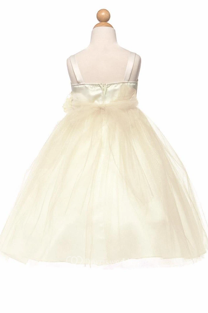 Tea-Length Spaghetti Tiered Empire Tulle&Satin Flower Girl Dress