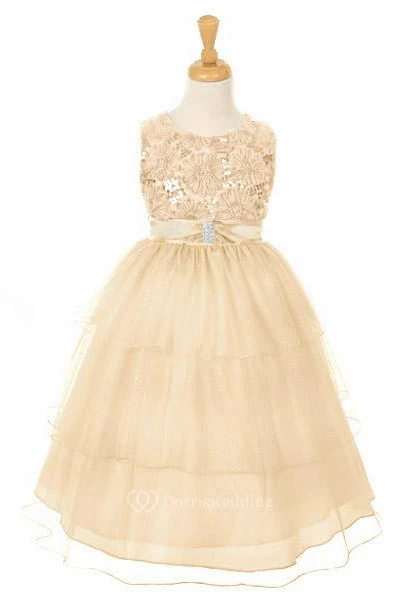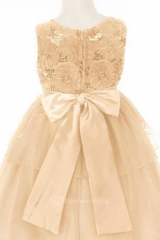 Tea-Length Split-Front Sequins&Satin Flower Girl Dress