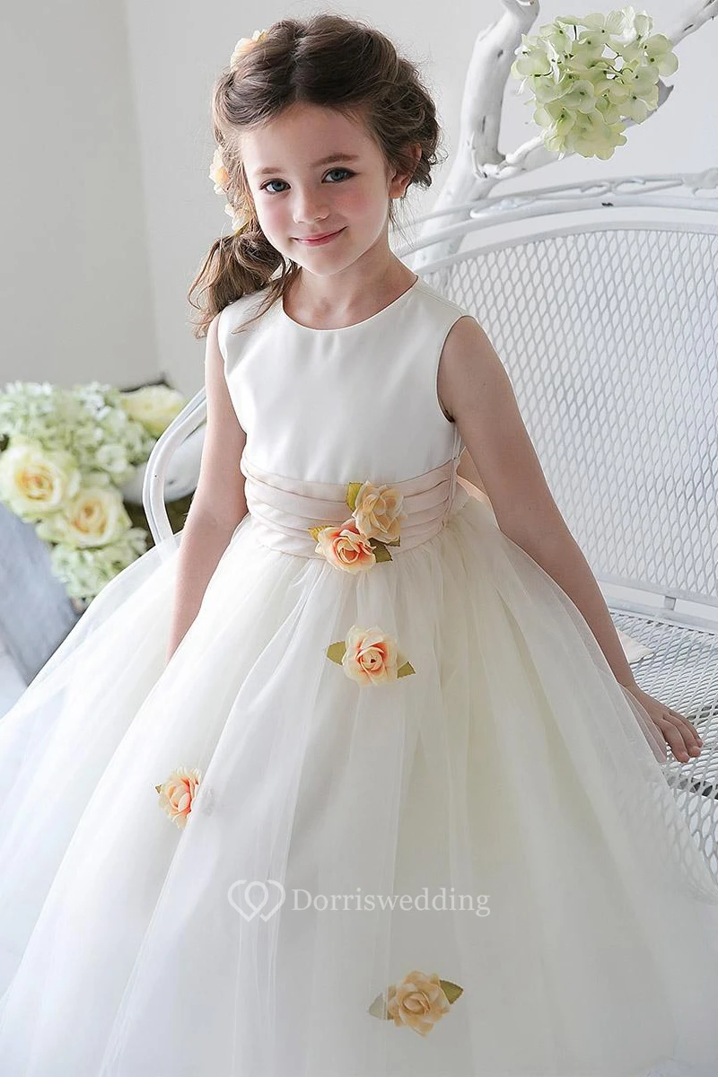 Tea-Length Split-Front Tulle&Sequins Flower Girl Dress