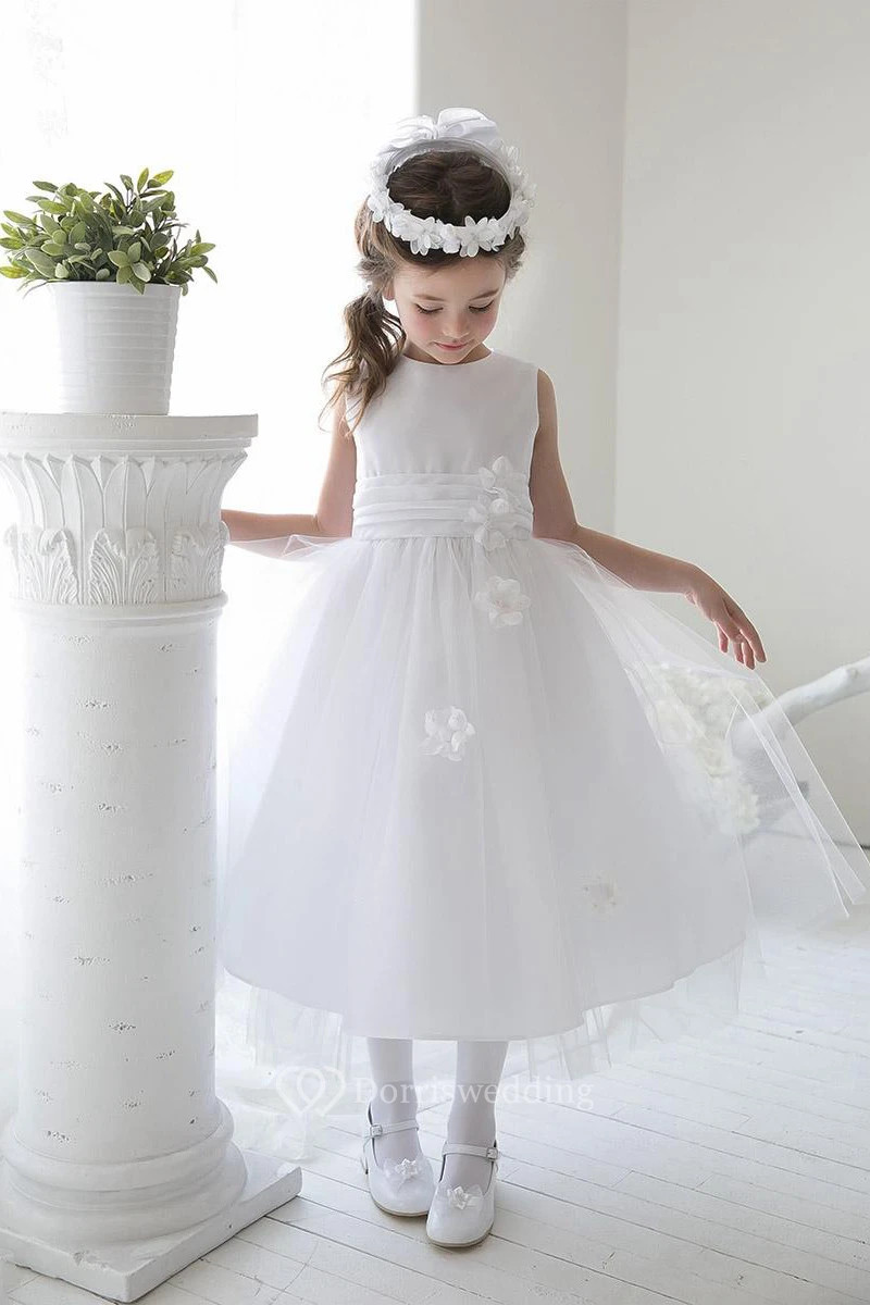 Tea-Length Split-Front Tulle&Sequins Flower Girl Dress