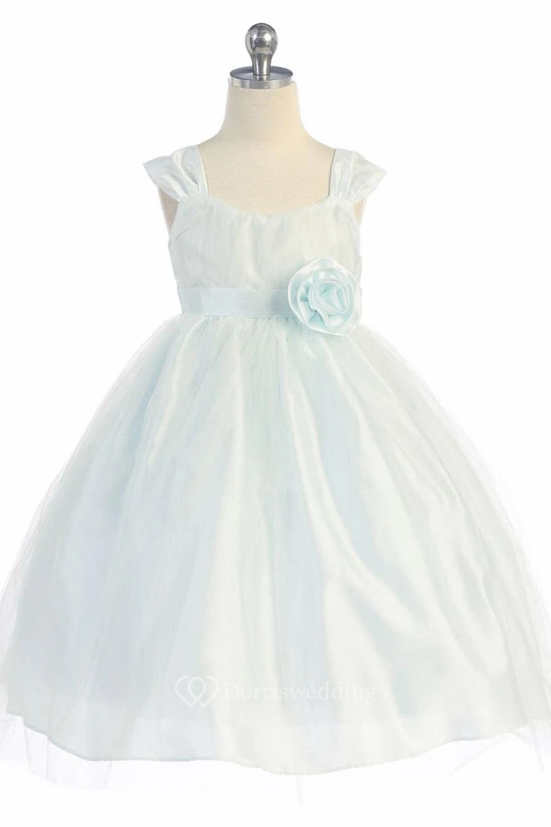 Tea-Length Straps Empire Tiered Tulle Flower Girl Dress