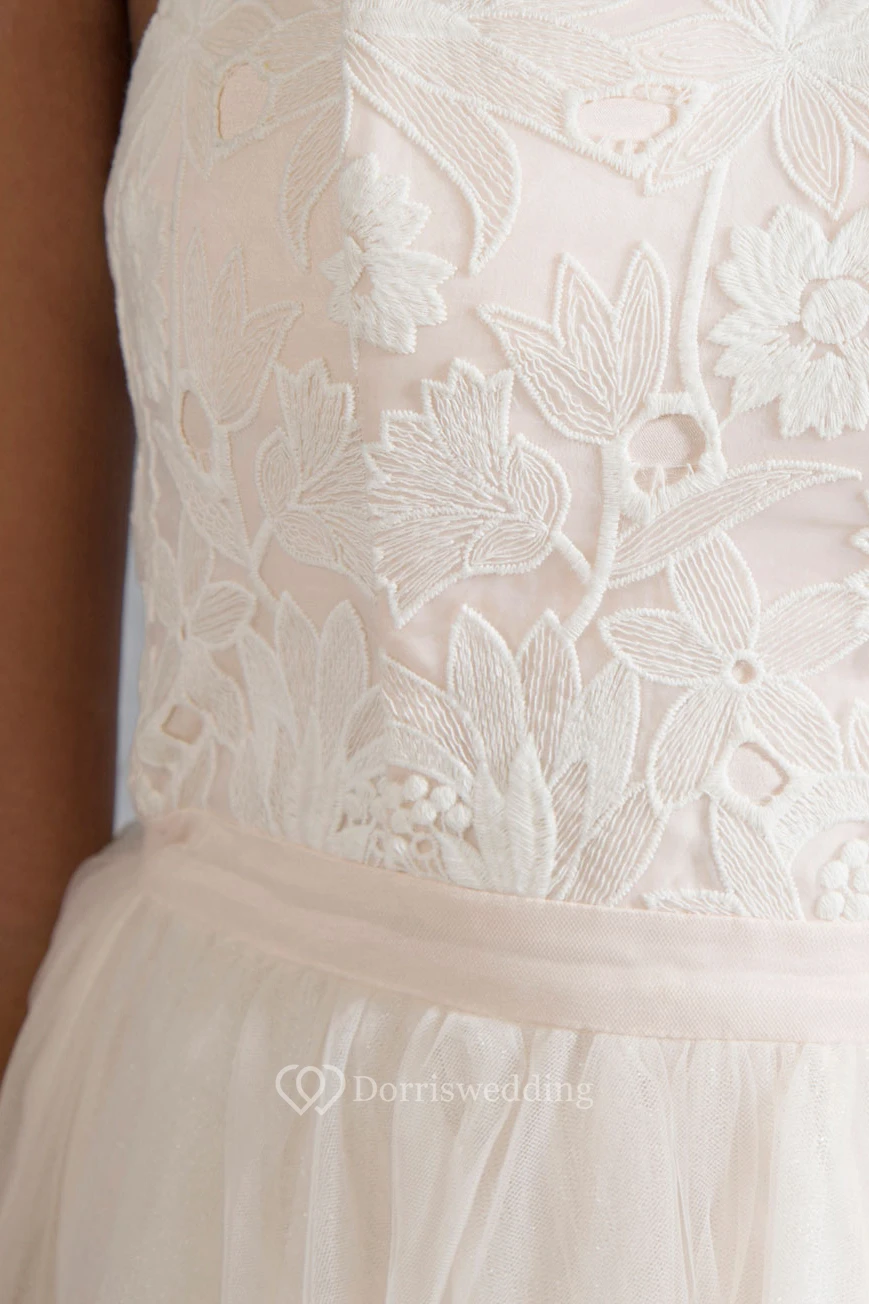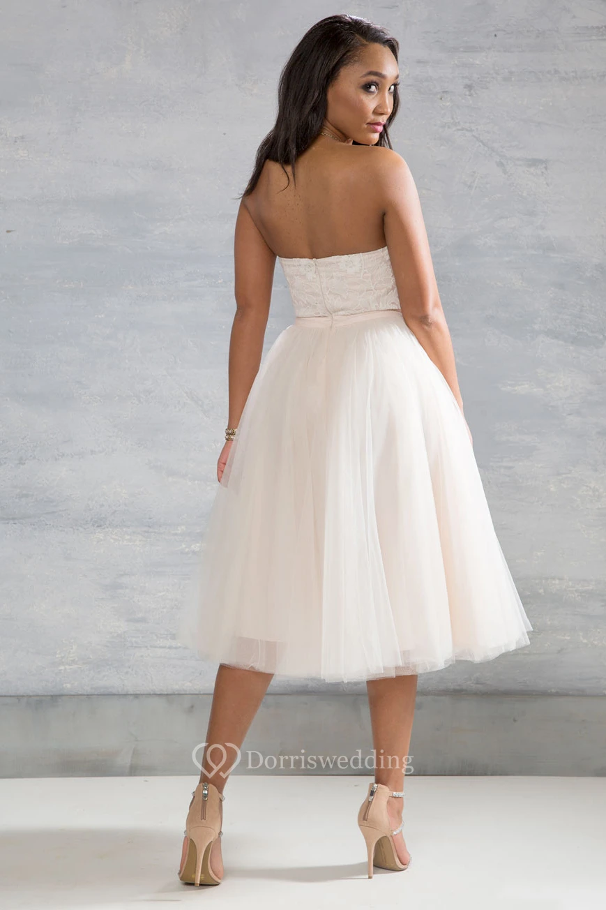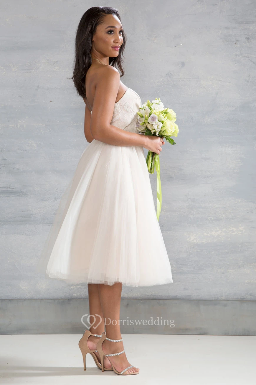 Tea-Length Sweetheart Sleeveless Appliqued Tulle Wedding Dress