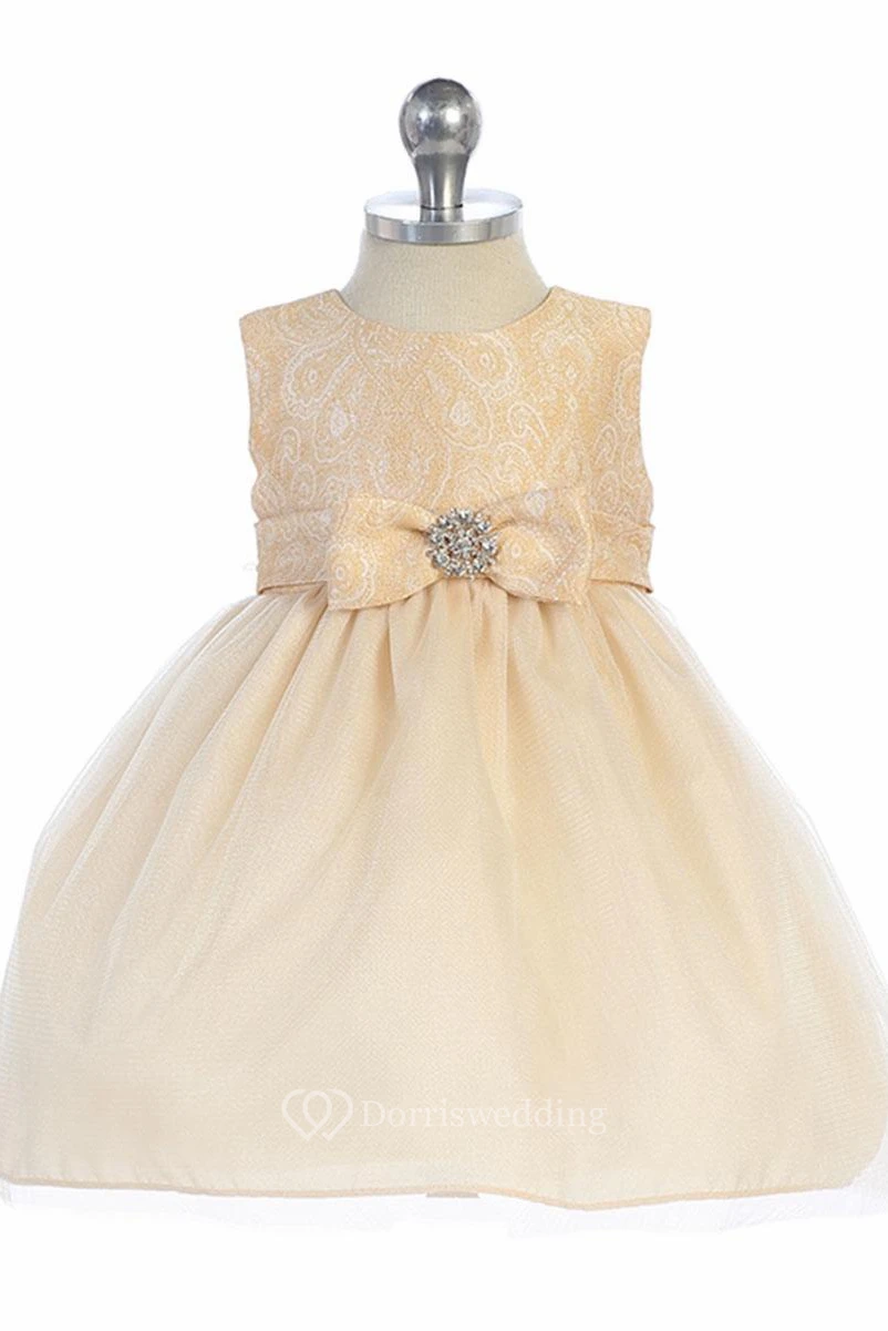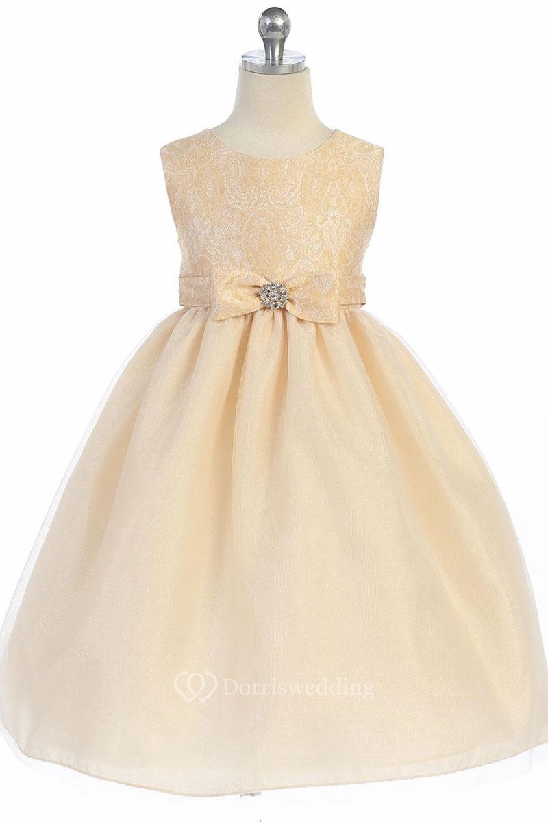 Tea-Length Tiered Bowed Tulle&Satin Flower Girl Dress