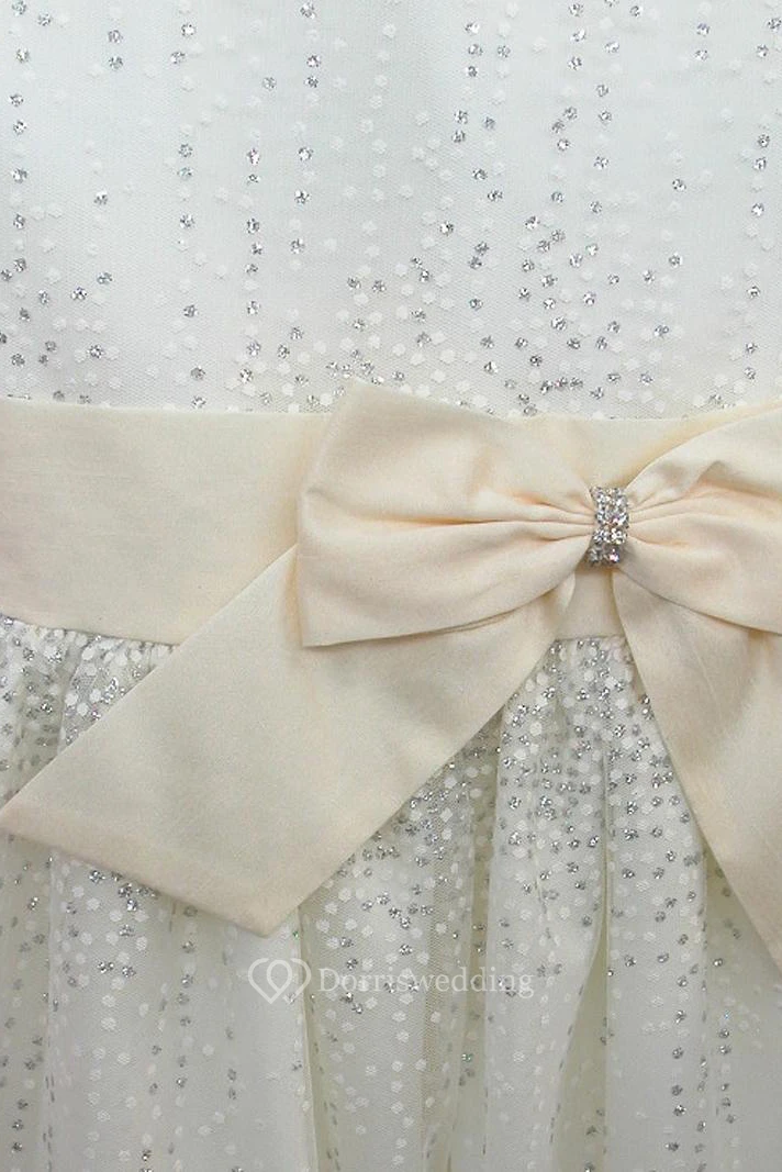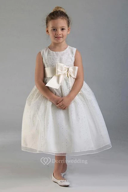 Tea-Length Tiered Bowed Tulle&Satin Flower Girl Dress With Split Front