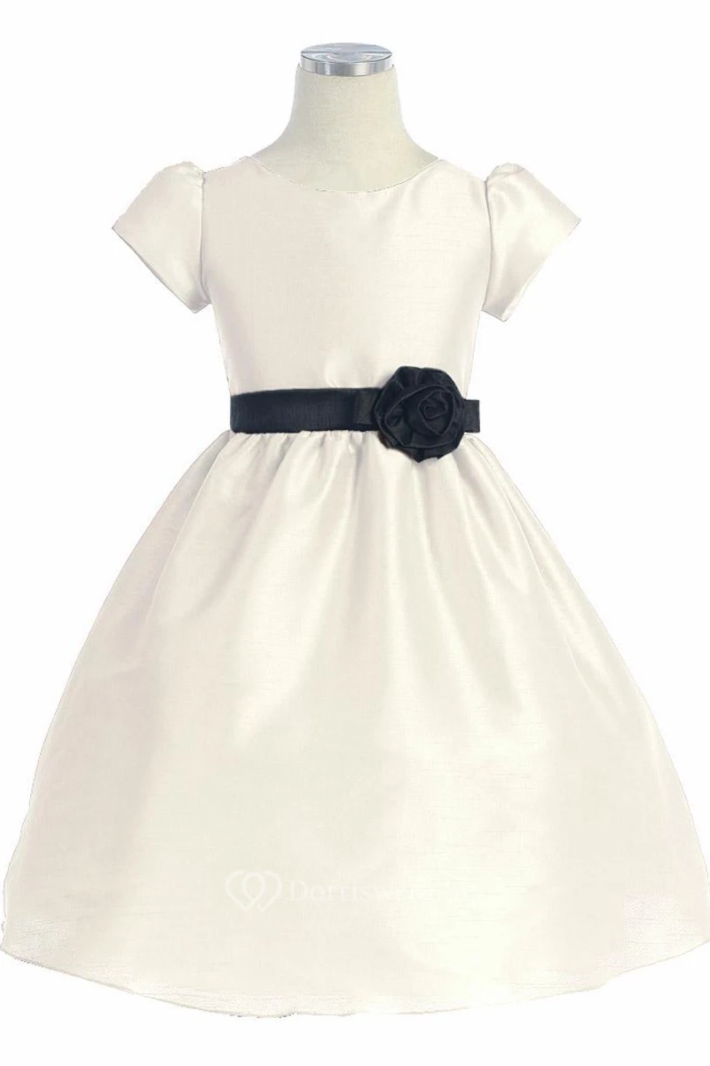 Tea-Length Tiered Cap-Sleeve Flower Girl Dress