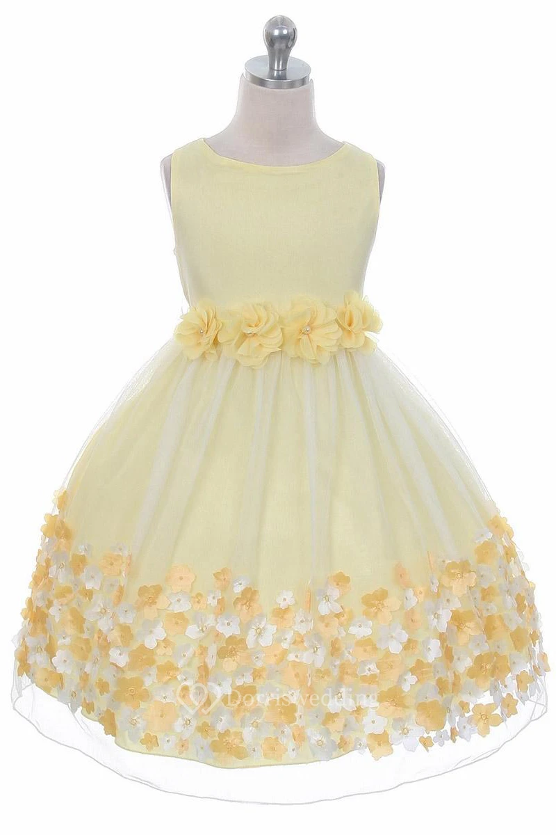 Tea-Length Tiered Chiffon&Satin Flower Girl Dress