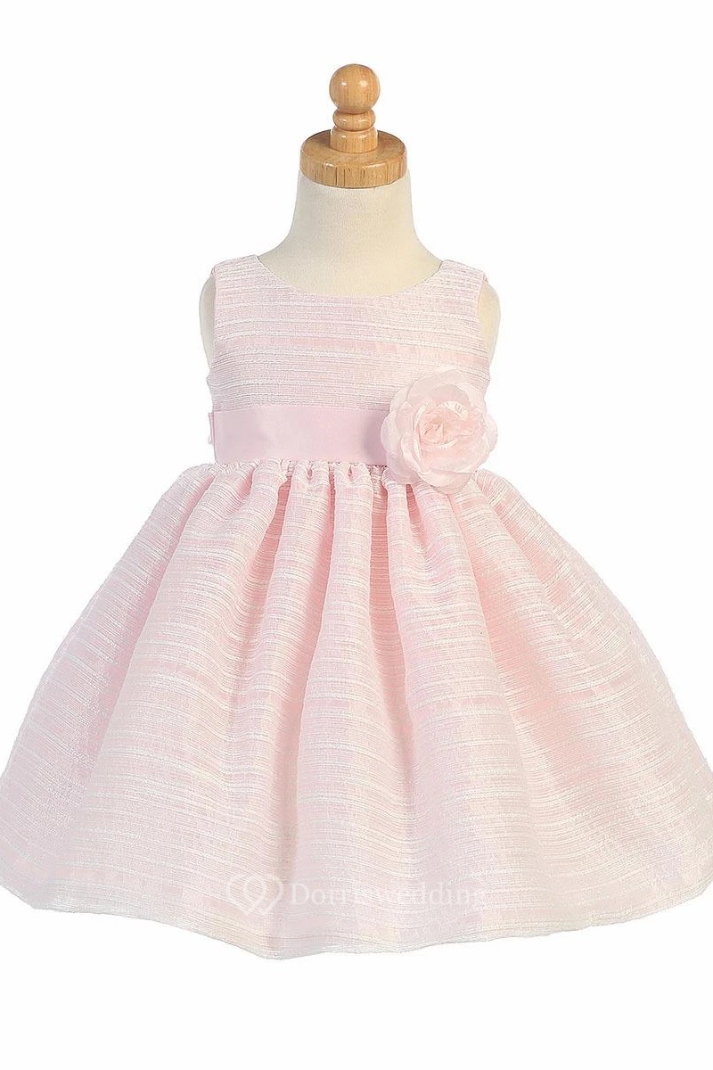 Tea-Length Tiered Organza&Satin Flower Girl Dress