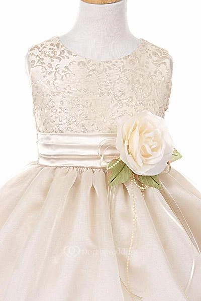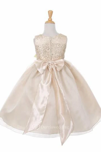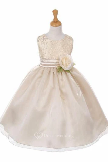 Tea-Length Tiered Organza&Satin Flower Girl Dress